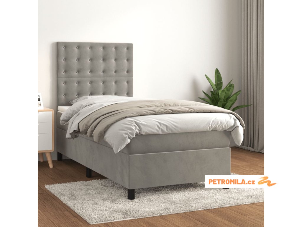 Box spring postel s matrací světle šedá 100x200 cm samet