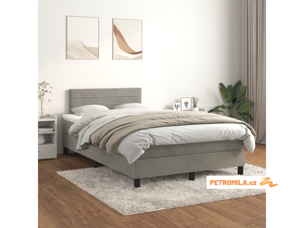 Box spring postel s matrací světle šedá 120 x 200 cm samet