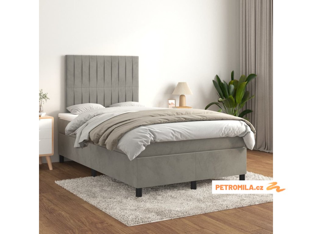 Box spring postel s matrací světle šedá 120 x 200 cm samet