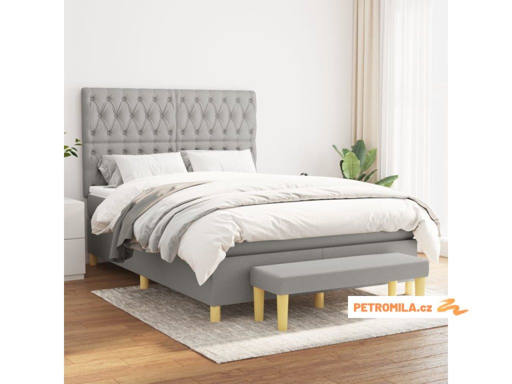 Box spring postel s matrací světle šedá 140 x 190 cm textil