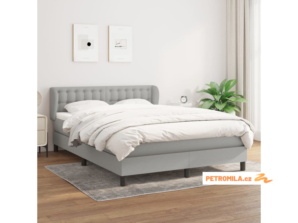 Box spring postel s matrací světle šedá 140 x 190 cm textil