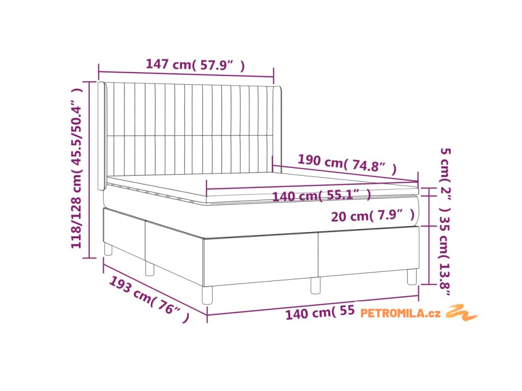 - Rozměry: 140 x 190 x 20 cm (Š x D x V)