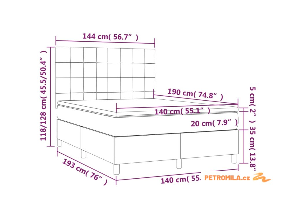 - Rozměry: 140 x 190 x 20 cm (Š x D x V)