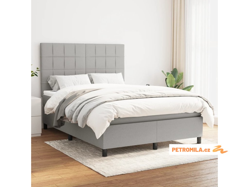 Box spring postel s matrací světle šedá 140 x 190 cm textil