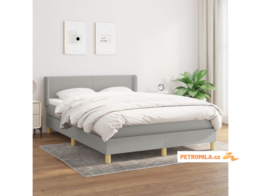 Box spring postel s matrací světle šedá 140 x 200 cm textil