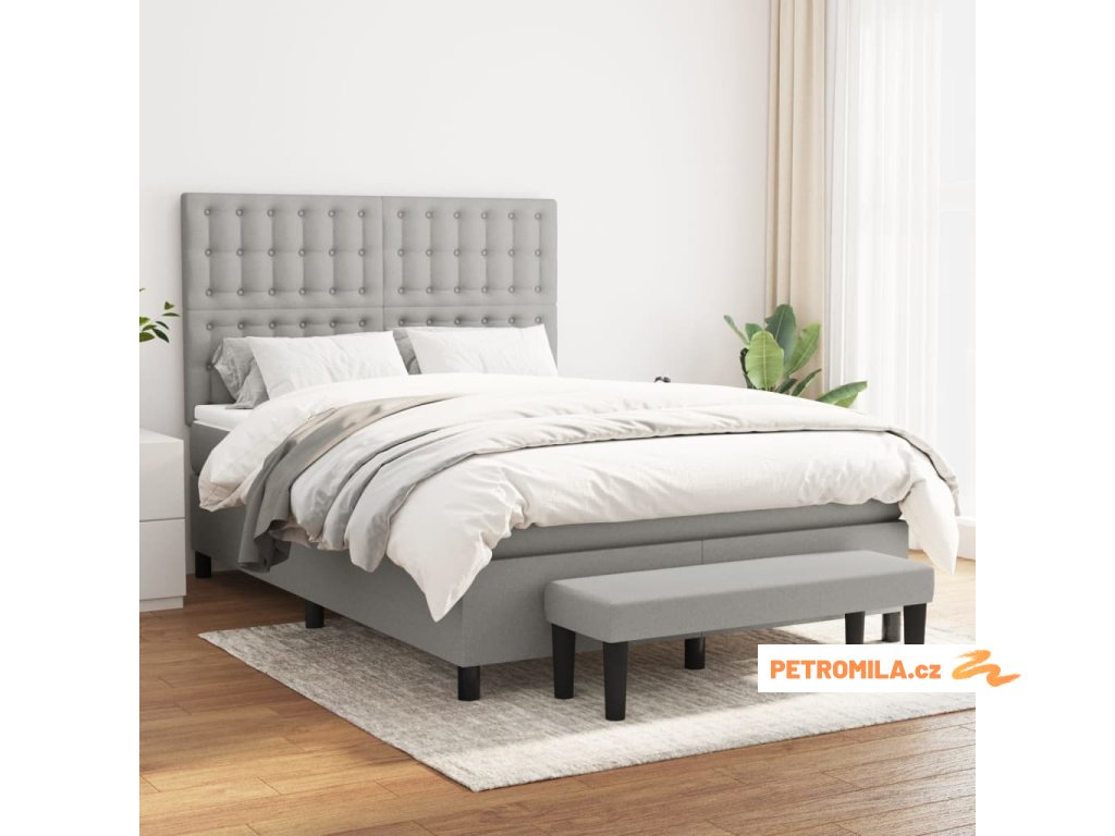 Box spring postel s matrací světle šedá 140 x 200 cm textil