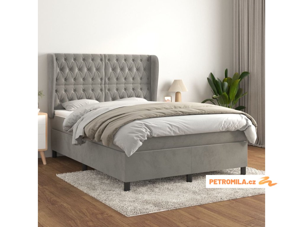 Box spring postel s matrací světle šedá 140x190 cm samet
