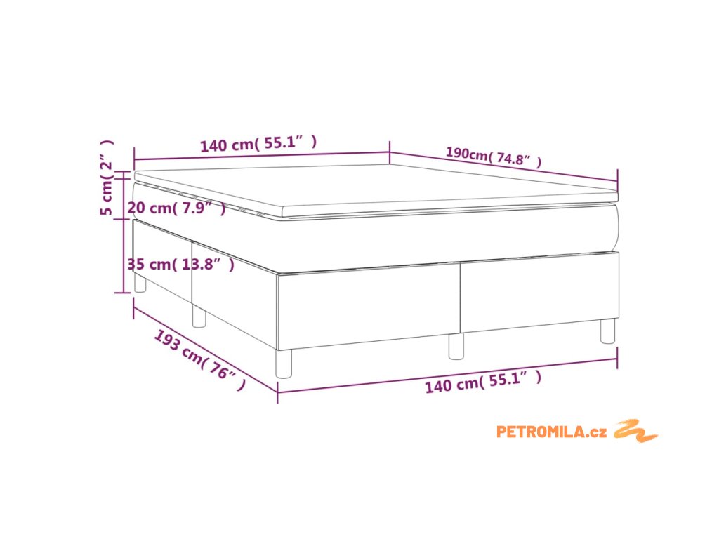 - Rozměry: 140 x 190 x 20 cm (Š x D x V)