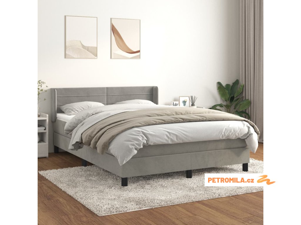 Box spring postel s matrací světle šedá 140x190 cm samet