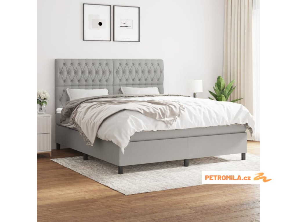 Box spring postel s matrací světle šedá 180 x 200 cm textil