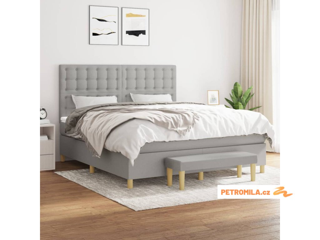 Box spring postel s matrací světle šedá 180 x 200 cm textil
