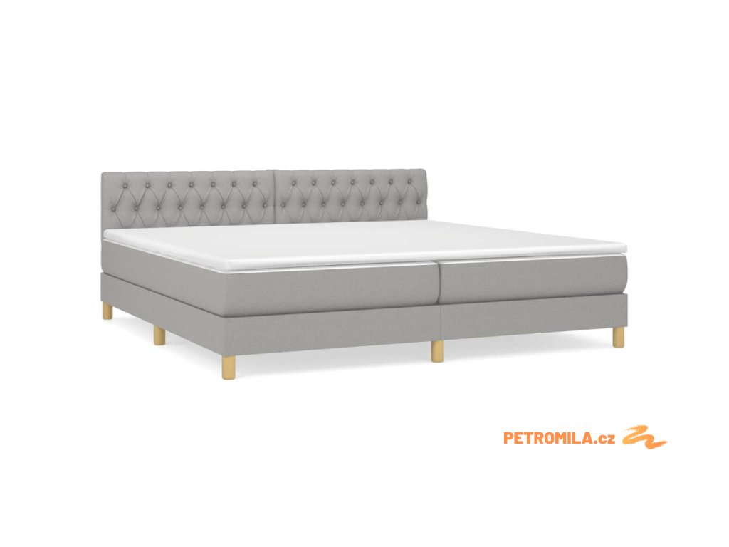 Box spring postel s matrací světle šedá 200 x 200 cm textil