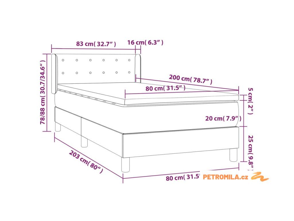 • Rozměry: 80 x 200 x 20 cm (Š x D x V)