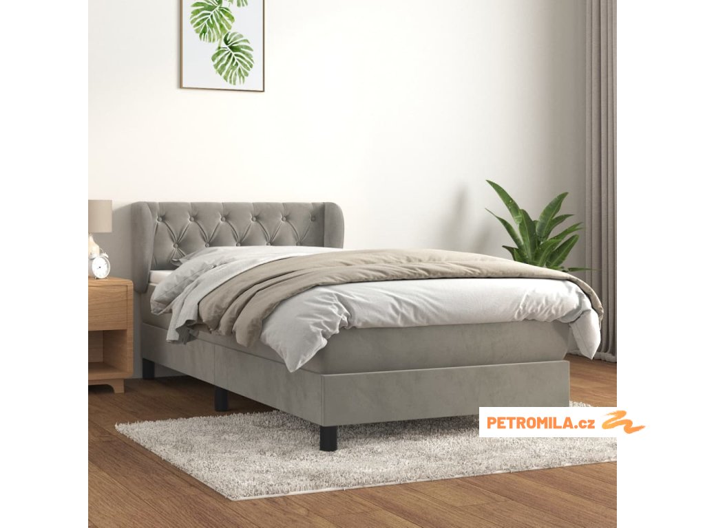 Box spring postel s matrací světle šedá 80 x 200 cm samet