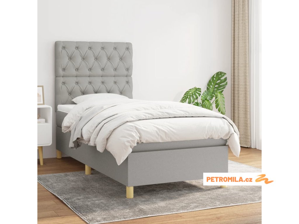 Box spring postel s matrací světle šedá 80 x 200 cm textil