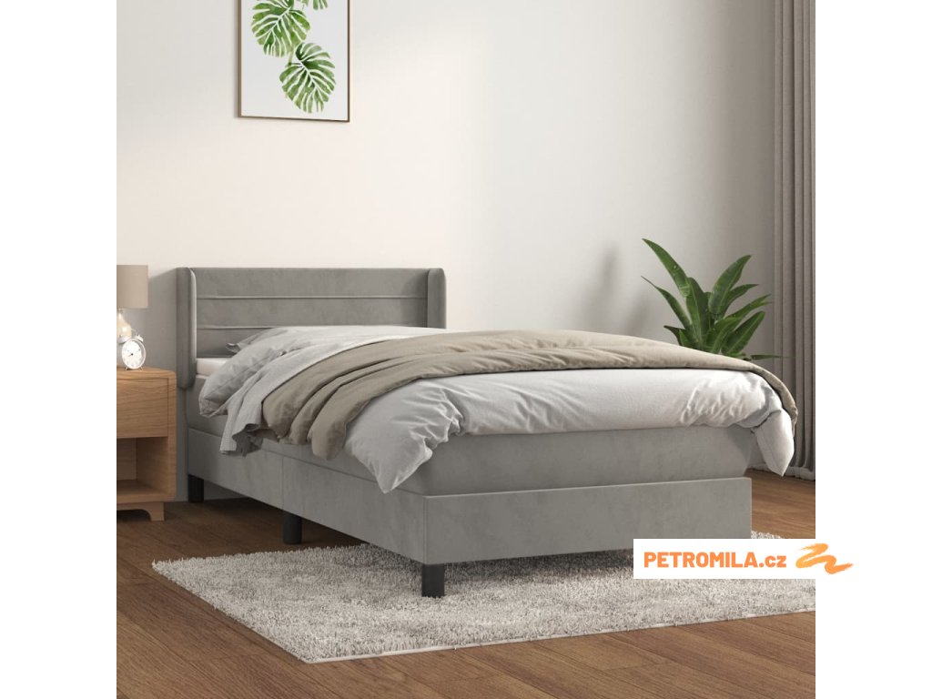 Box spring postel s matrací světle šedá 90x190 cm samet