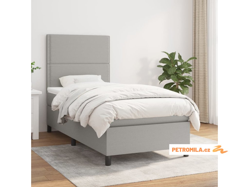 Box spring postel s matrací světle šedá 90x190 cm textil