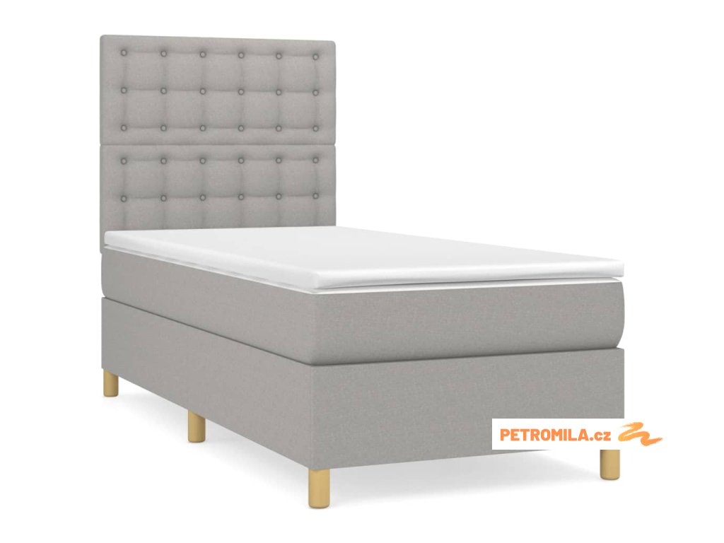 Box spring postel s matrací světle šedá 90x190 cm textil