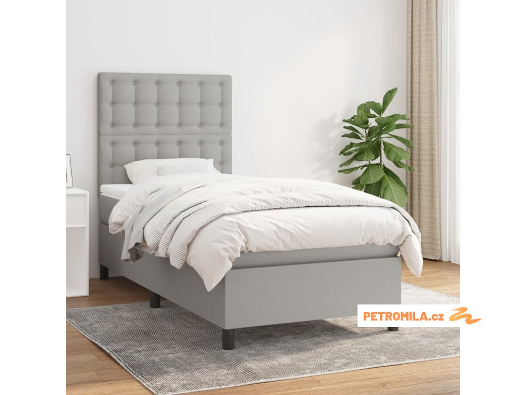 Box spring postel s matrací světle šedá 90x190 cm textil