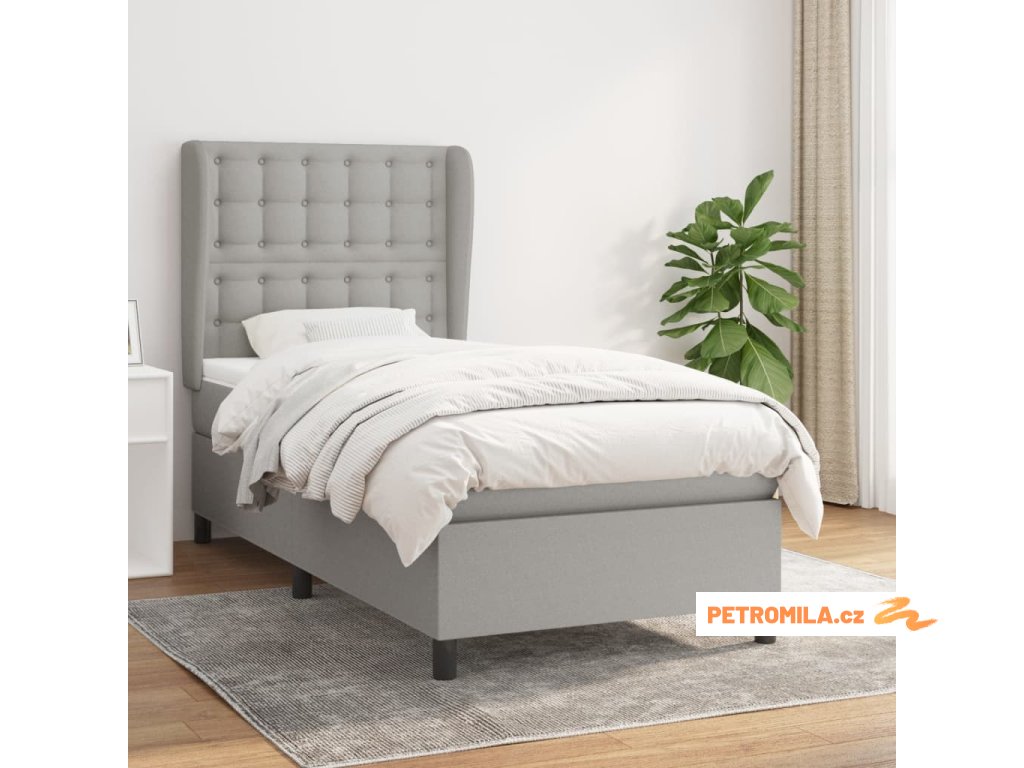 Box spring postel s matrací světle šedá 90x190 cm textil