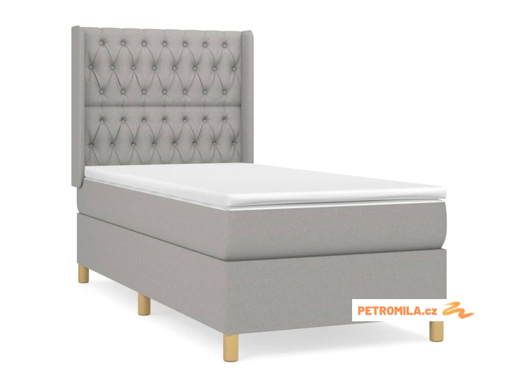 Box spring postel s matrací světle šedá 90x190 cm textil