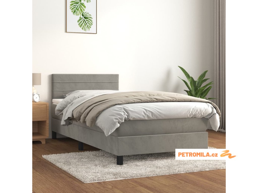 Box spring postel s matrací světle šedá 90x200 cm samet