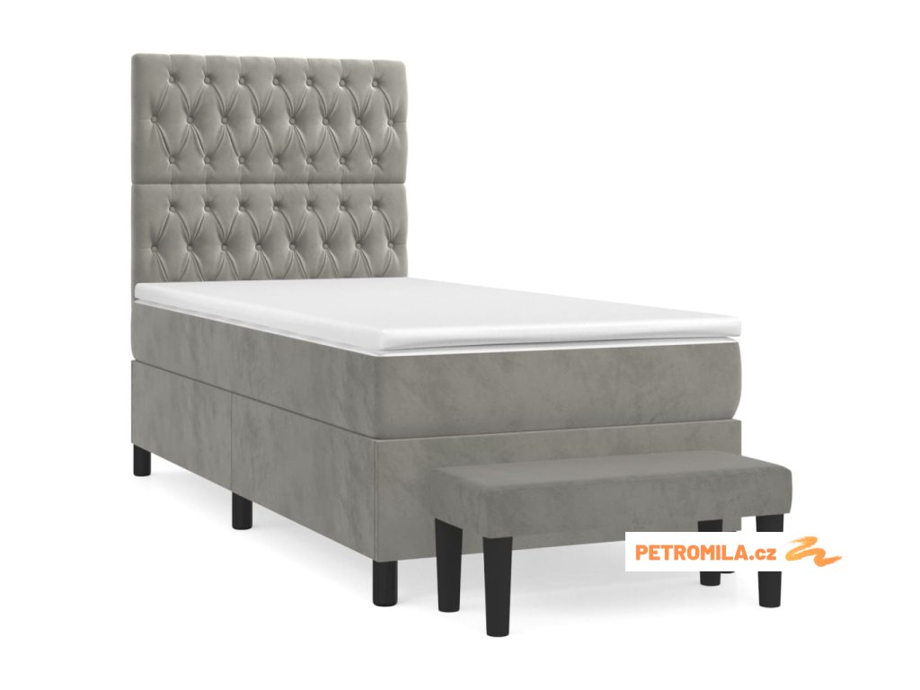 Box spring postel s matrací světle šedá 90x200 cm samet