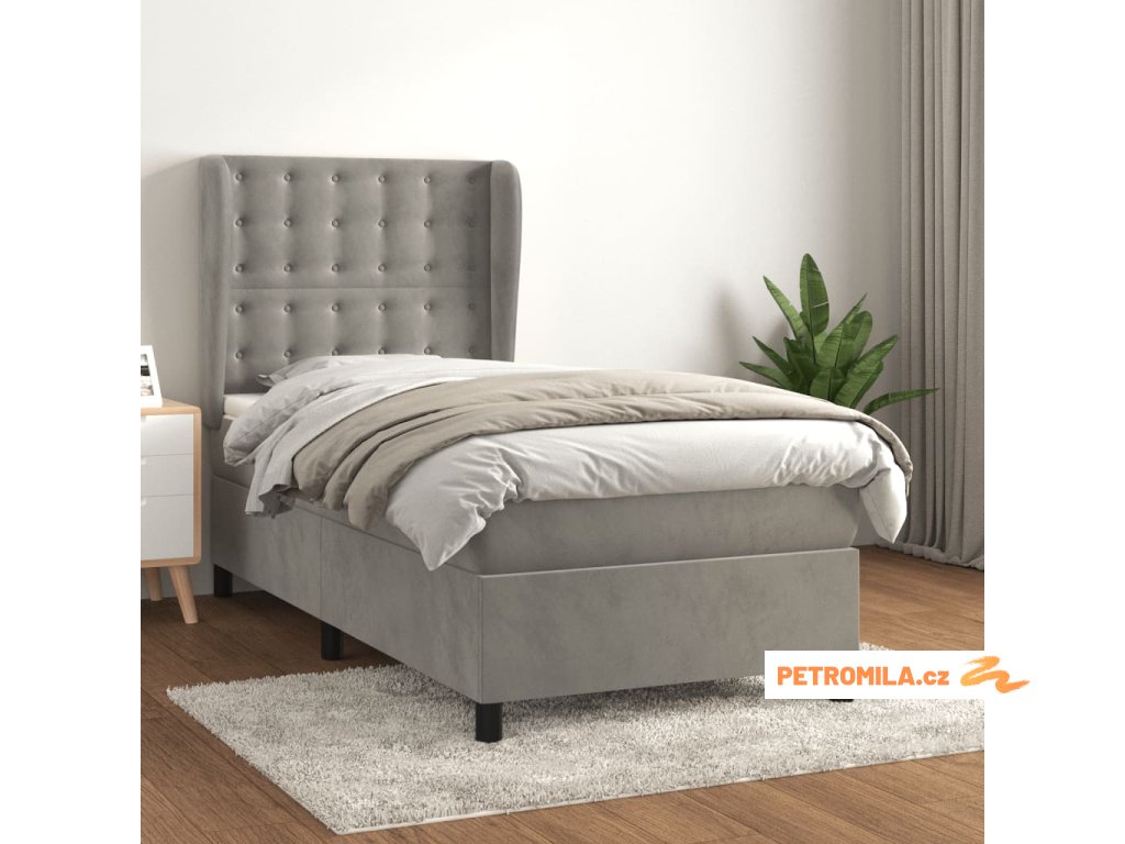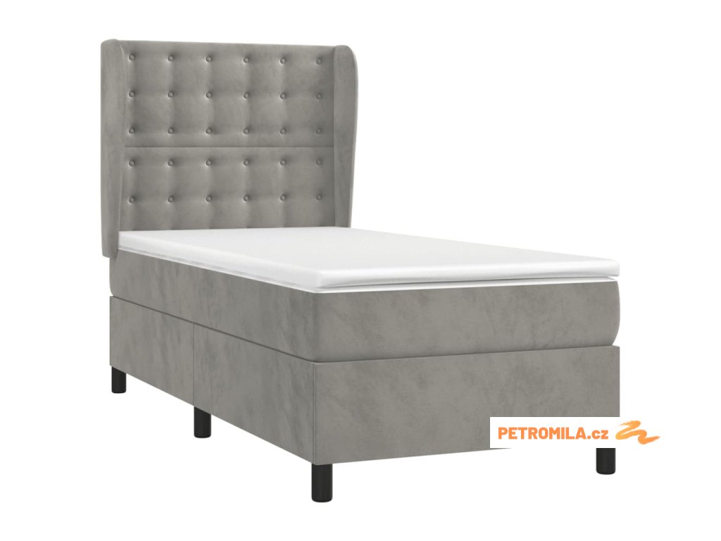 Box spring postel s matrací světle šedá 90x200 cm samet