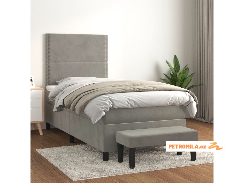 Box spring postel s matrací světle šedá 90x200 cm samet