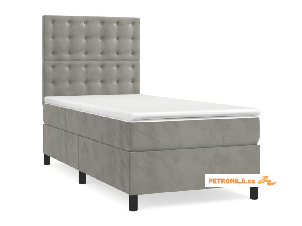Box spring postel s matrací světle šedá 90x200 cm samet
