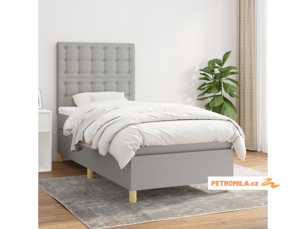 Box spring postel s matrací světle šedá 90x200 cm textil