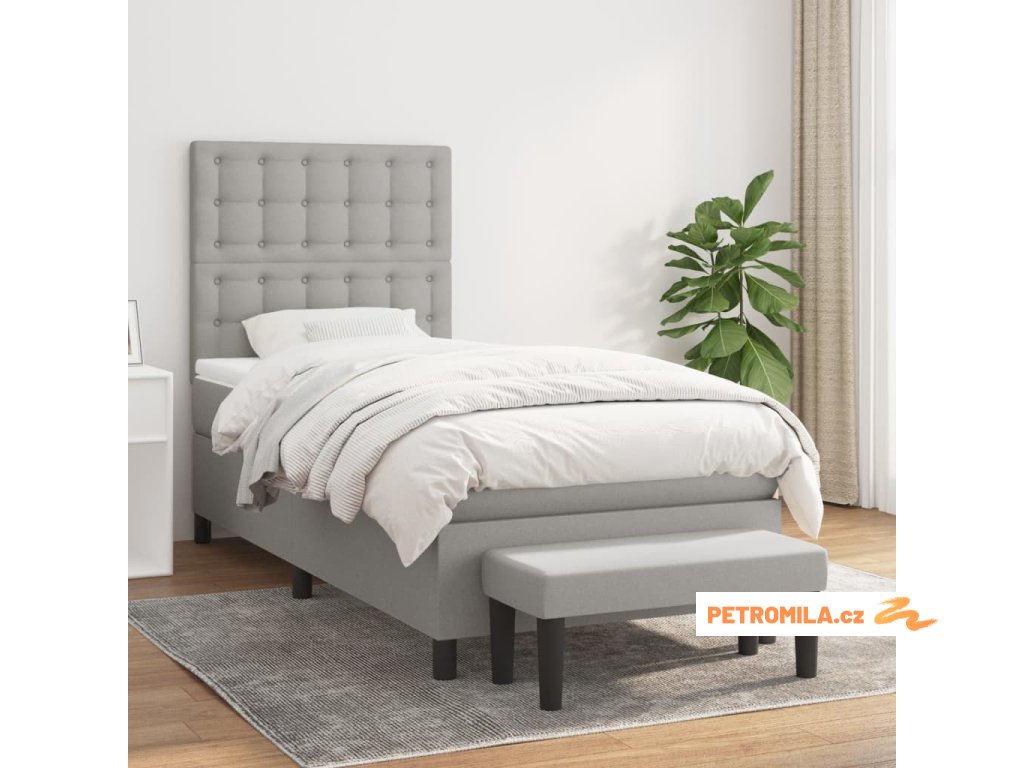 Box spring postel s matrací světle šedá 90x200 cm textil