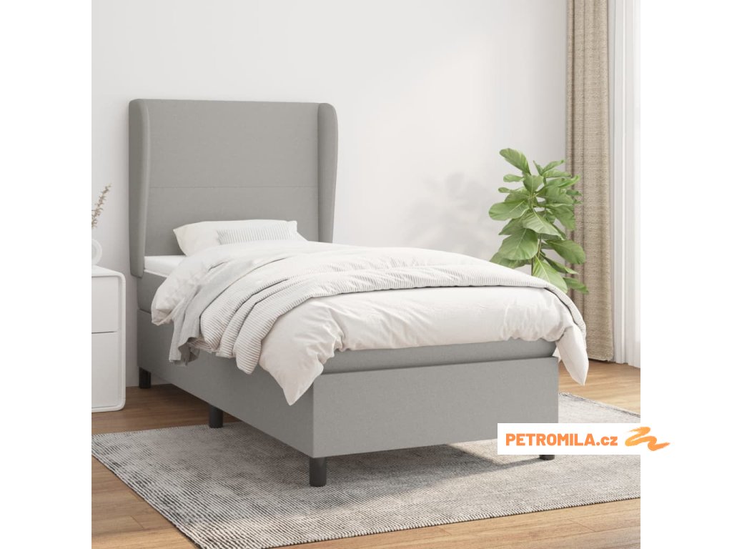 Box spring postel s matrací světle šedá 90x200 cm textil