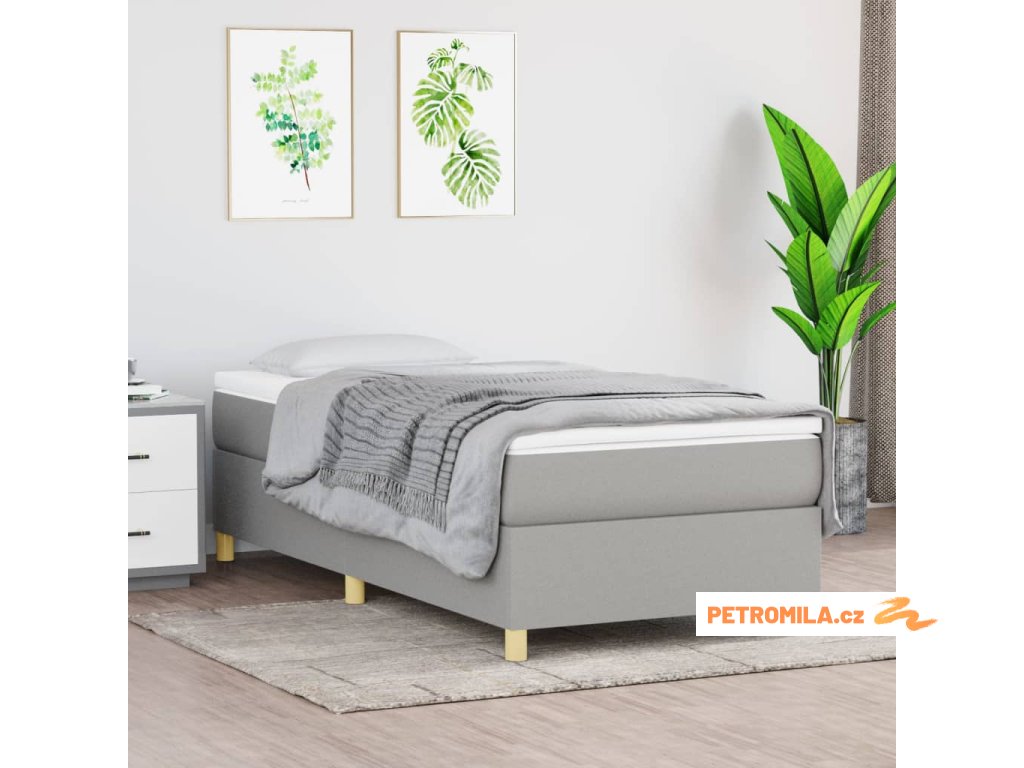 Box spring postel s matrací světle šedý 100 x 200 cm textil
