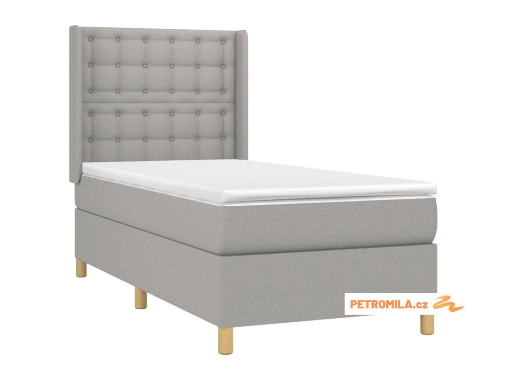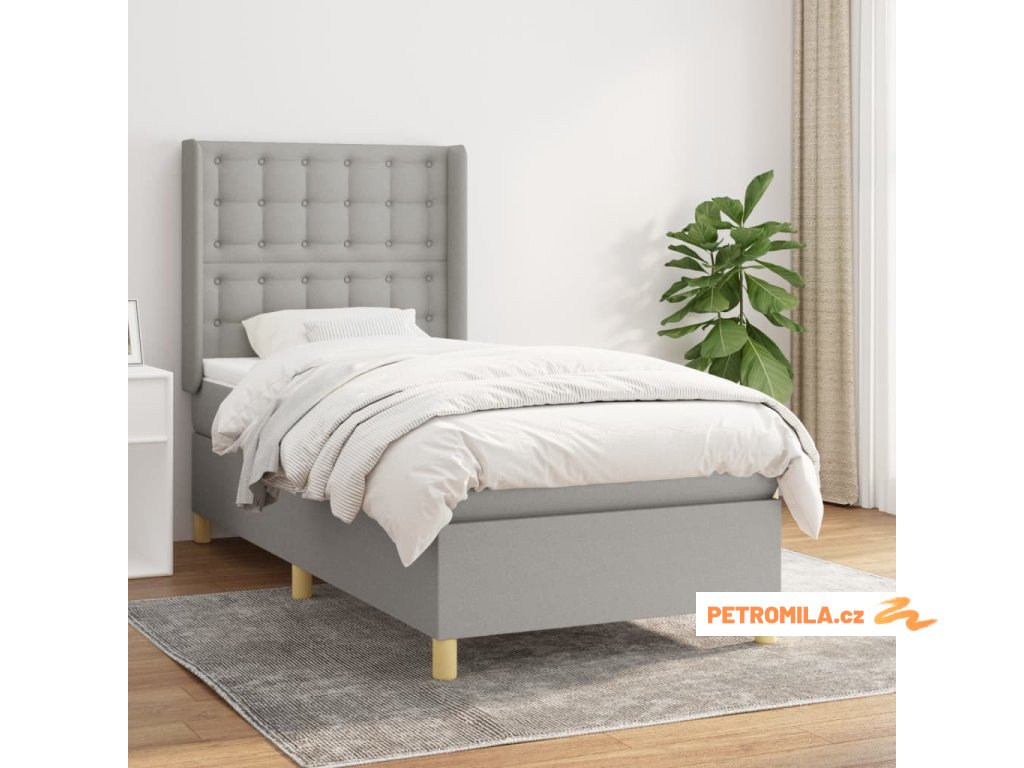 Box spring postel s matrací světle šedý 100 x 200 cm textil