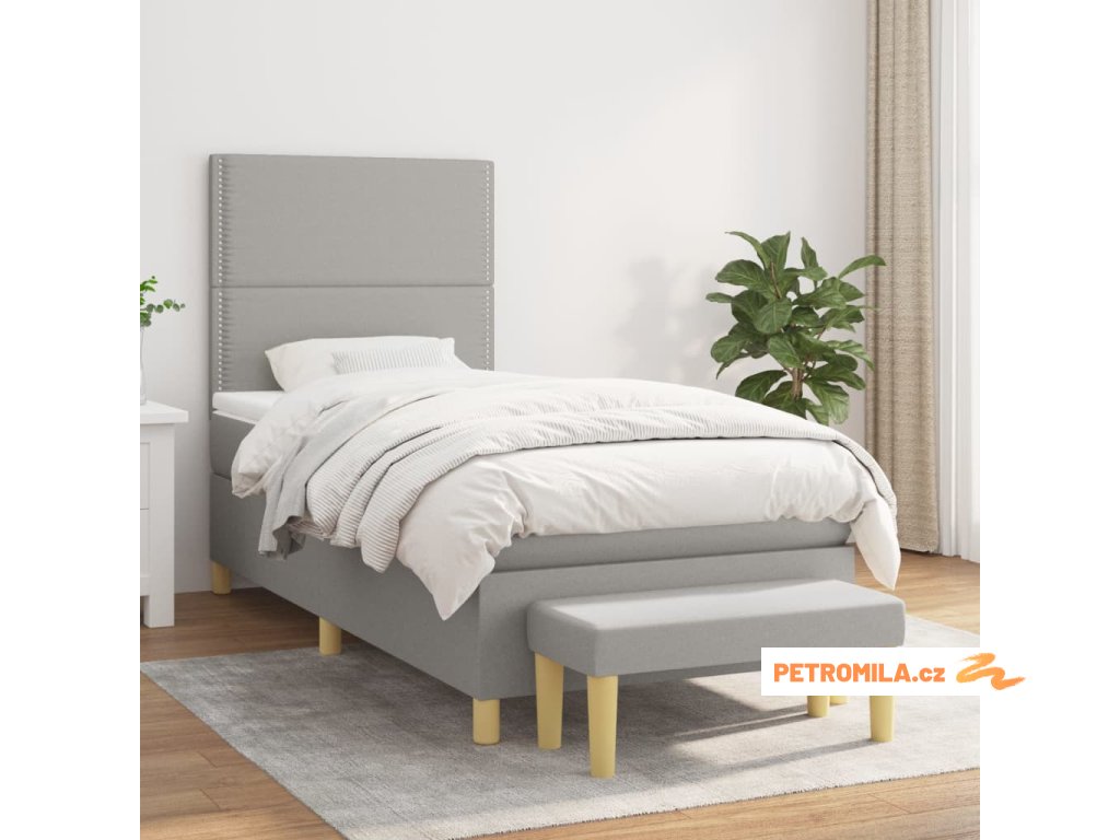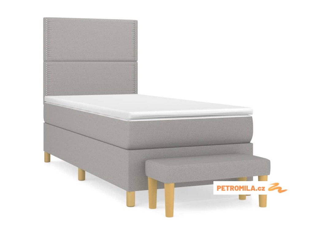 Box spring postel s matrací světle šedý 100 x 200 cm textil
