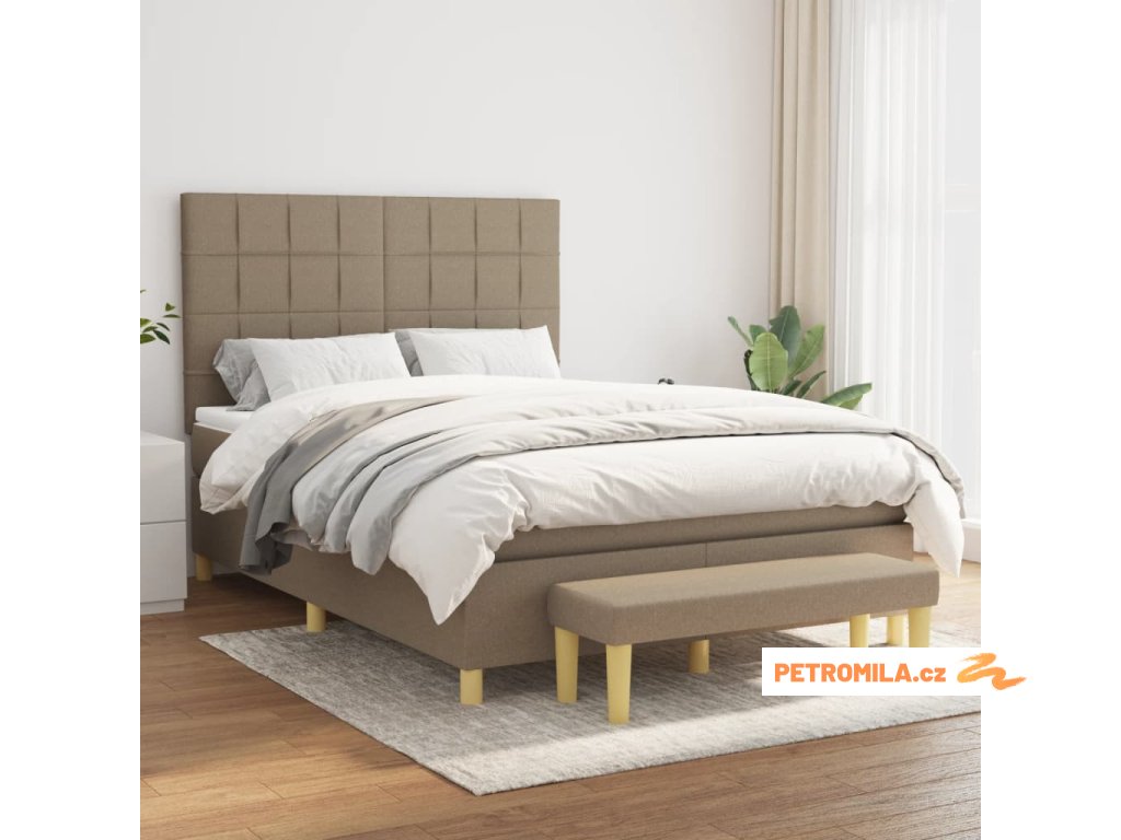 Box spring postel s matrací taupe 140x190 cm textil
