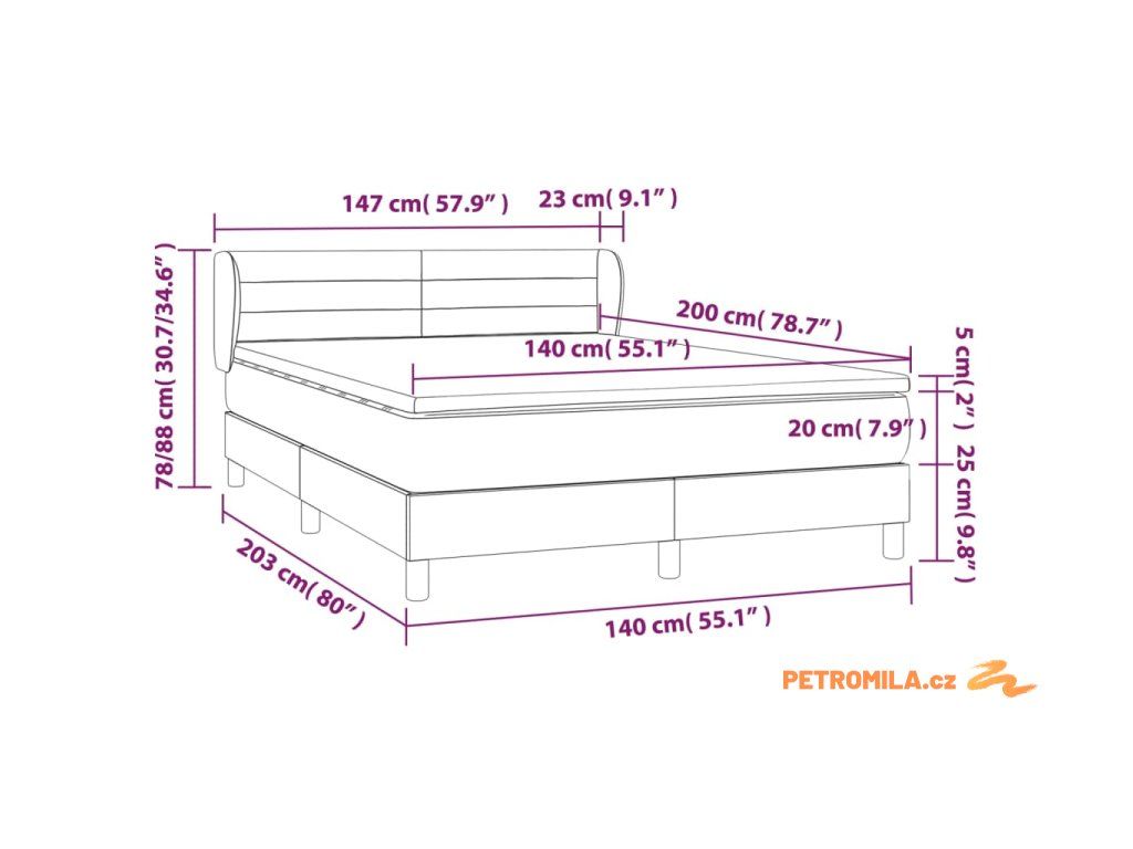 • Rozměry: 140 x 200 x 20 cm (Š x D x V)