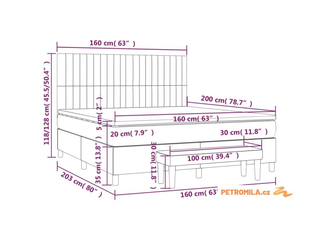 - Rozměry: 203 x 160 x 118/128 cm (D x Š x V)