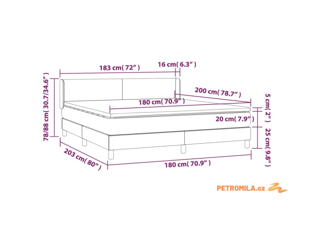 - Rozměry: 203 x 183 x 78/88 cm (D x Š x V)