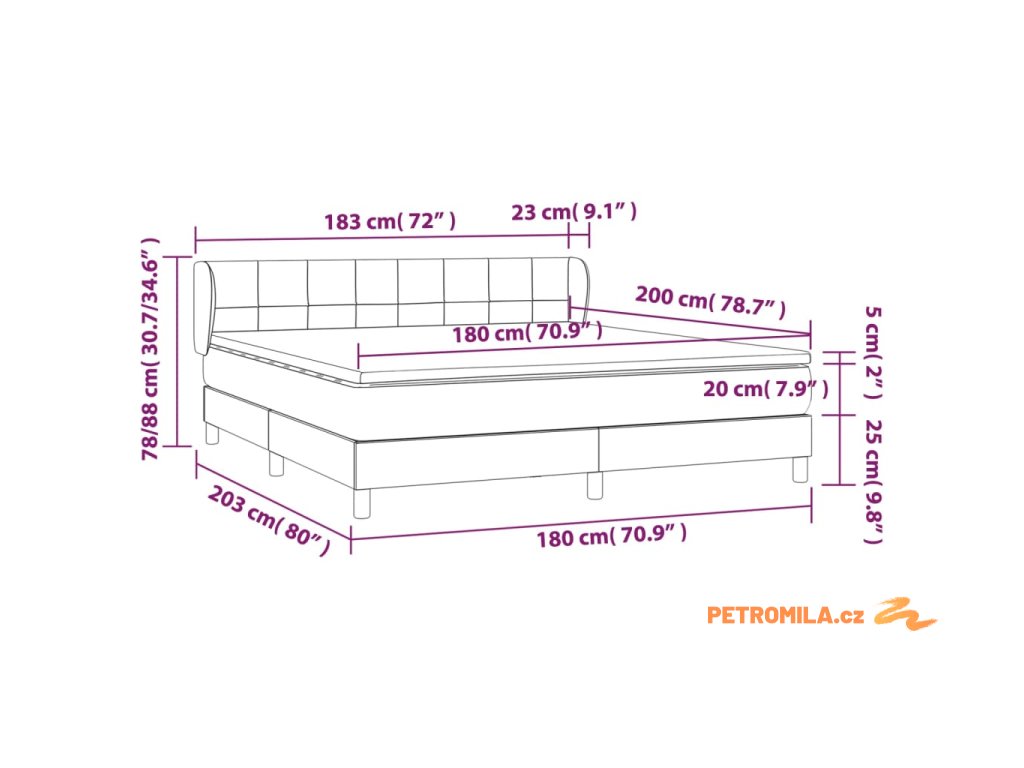 - Rozměry: 203 x 183 x 78/88 cm (D x Š x V)