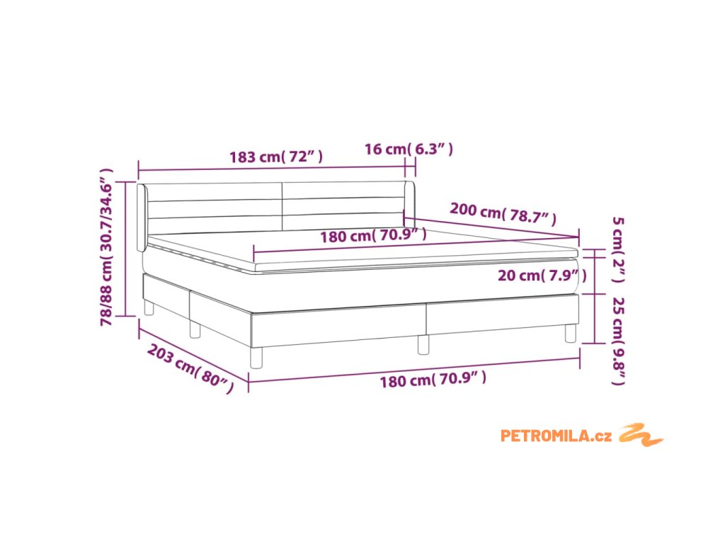 - Celkové rozměry: 180 x 200 x 20 cm (D x Š x V)