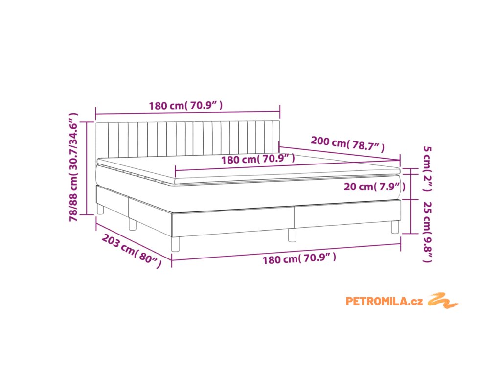 - Celkové rozměry: 180 x 200 x 20 cm (D x Š x V)