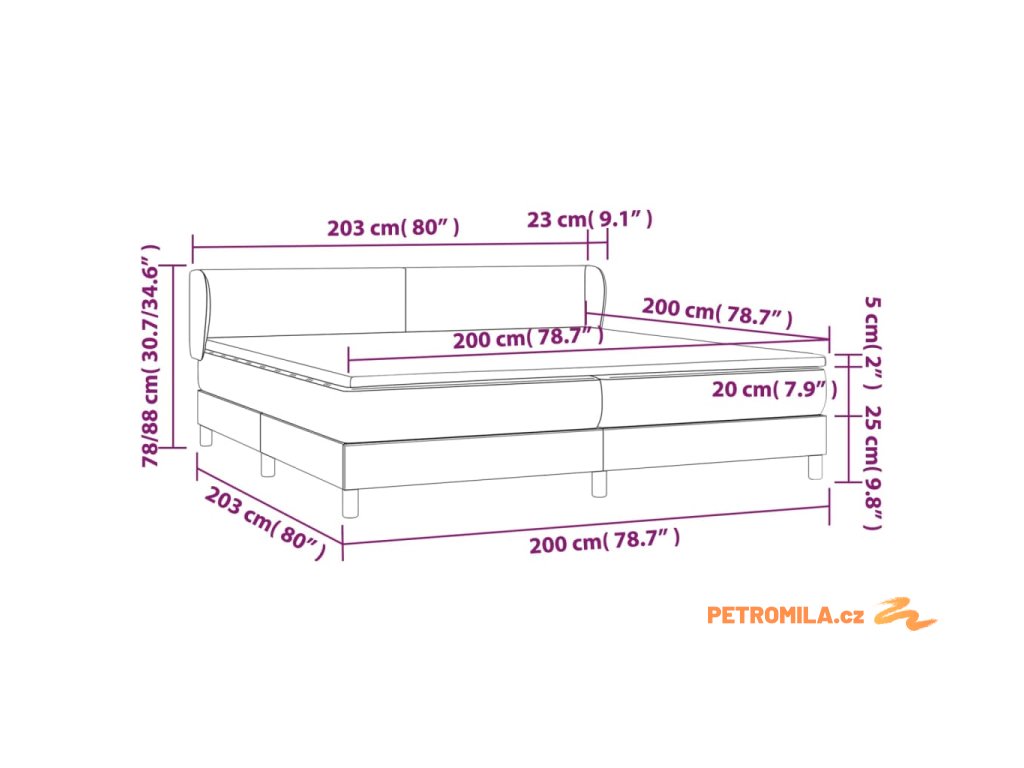 • Rozměry: 203 x 203 x 78/88 cm (D x Š x V)
