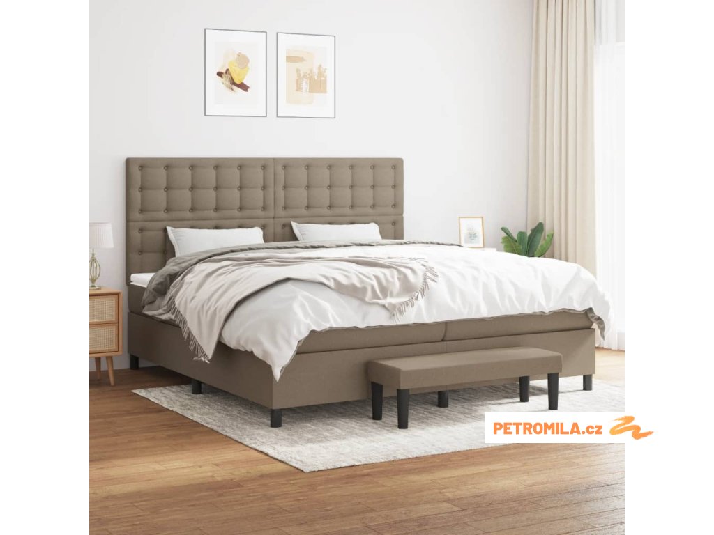 Box spring postel s matrací taupe 200x200 cm textil