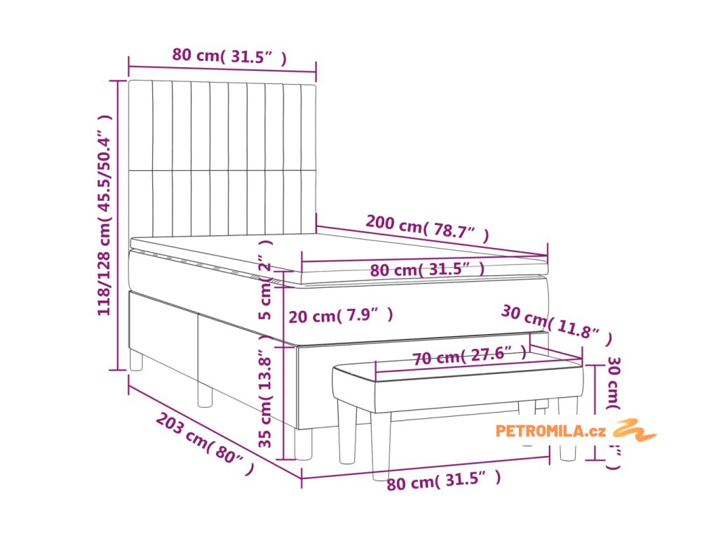 - Rozměry: 80 x 200 x 20 cm (Š x D x V)
