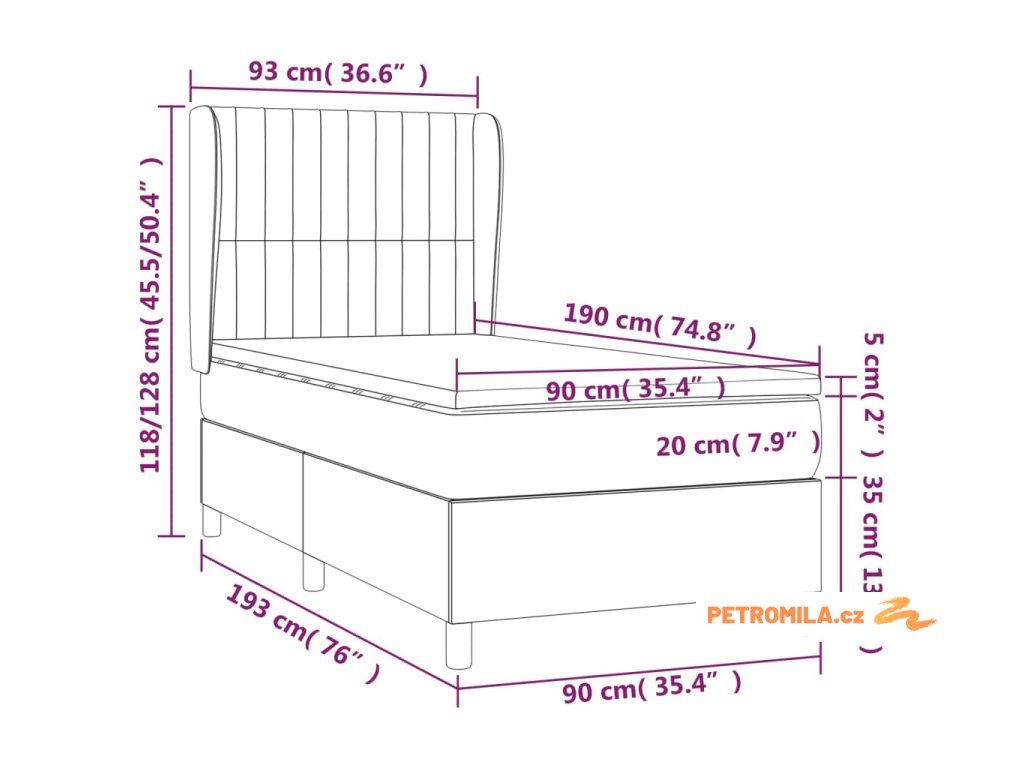 - Rozměry: 90 x 190 x 20 cm (Š x D x V)