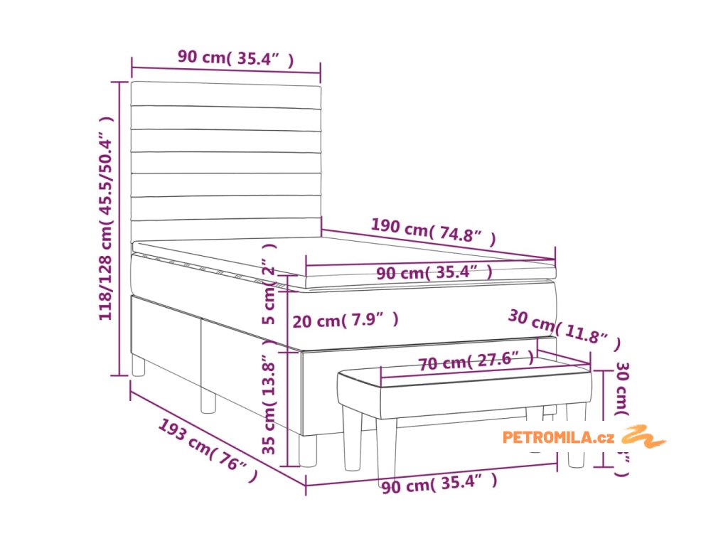 - Rozměry: 90 x 190 x 20 cm (Š x D x V)