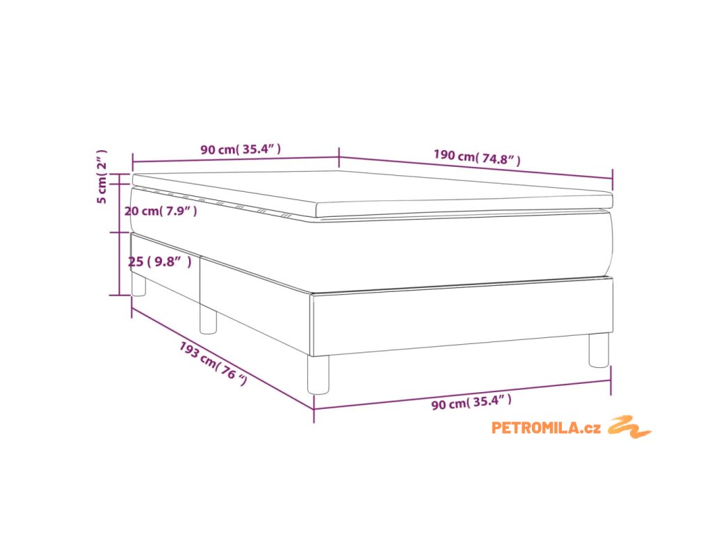 - Rozměry: 193 x 90 x 25 cm (D x Š x V)