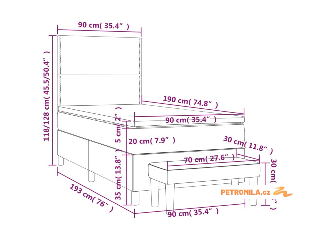 - Rozměry: 90 x 190 x 20 cm (Š x D x V)